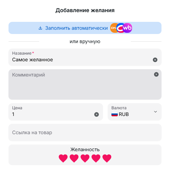 Укажите цену, ссылку, фото и приоритет — чтобы вас понимали с первого раза